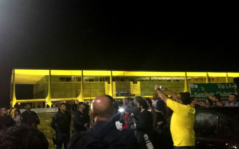 Por volta das 22h20, a Polícia Militar contabilizava mais de cem manifestantes no local. Naquele momento, uma pessoa já tinha sido detida por tentar invadir a área privativa do Palácio do Planalto, de acordo com a PM.