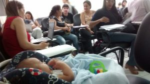 Batizado de Pedro, o bebê nasceu em dezembro do ano passado. Com apenas cinco meses, já acompanha a mãe nas últimas aulas presenciais do mestrado, que está programado para conclusão em março de 2018, quando a mestranda deverá submeter a defesa de sua dissertação.