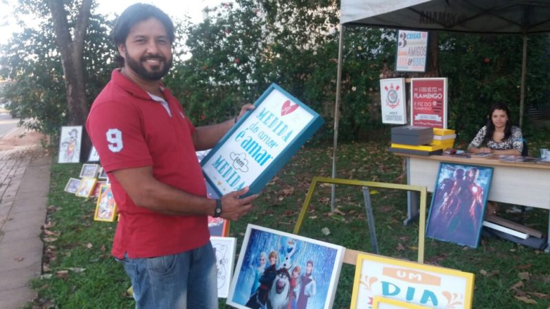 Em tempos de crise, usar a criatividade para ganhar uma grana extra e sair do “aperto” pode ser uma ótima opção. Proprietário de uma empresa de comunicação social, Tom Pinheiro resolveu sair do cotidiano dos negócios na sua área e passou vender quadros decorativos em um ponto do Parque da Maternidade de Rio Branco – quando se viu aperreado para pagar seus funcionários no final do mês. A ideia que deu certo surgiu, também, a partir do desperdício de materiais que sobravam na loja.