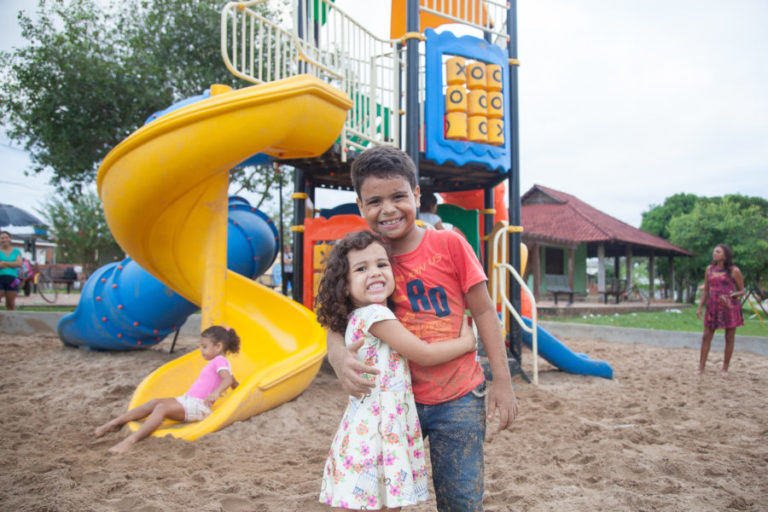 Os irmãos Sophia e Eduardo se divertem no playground (Foto: Alexandre Noronha/Secom)