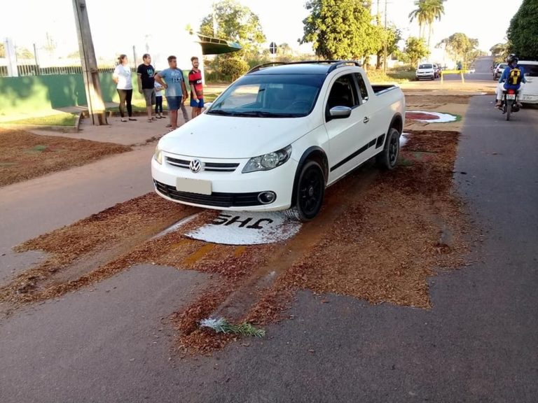 Uma foto do veículo sobre o tapete de Corpus Christi foi publicada no Facebook e causou revolta em fiéis católicos e evangélicos.