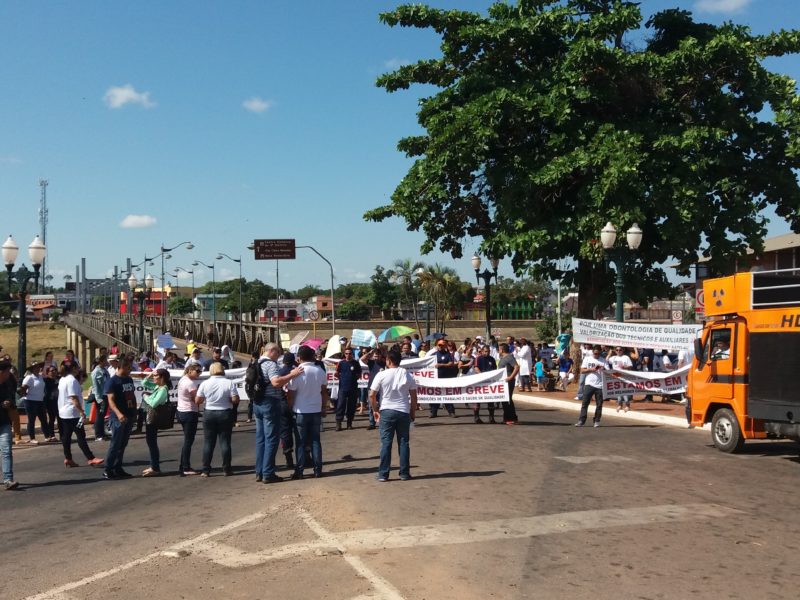 Em protesto realizado na manhã desta terça-feira (27), os servidores do Serviço Social de Saúde do Acre (Pró-Saúde) fecharam a ponte metálica para protestar contra horários abusivos e pagamentos que não correspondem às cargas de trabalho.
