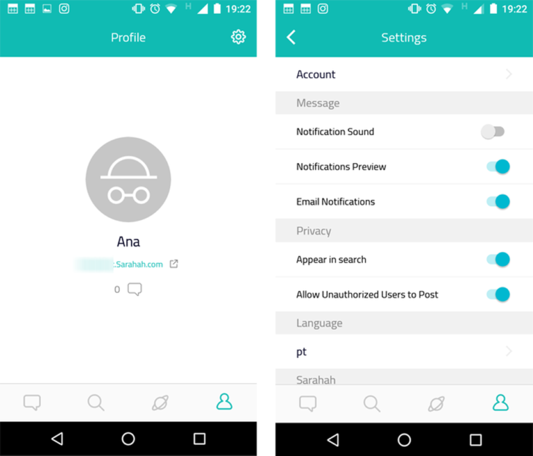 Perfil e configurações do app Sarahah para Android (Foto: Reprodução/Ana Marques)