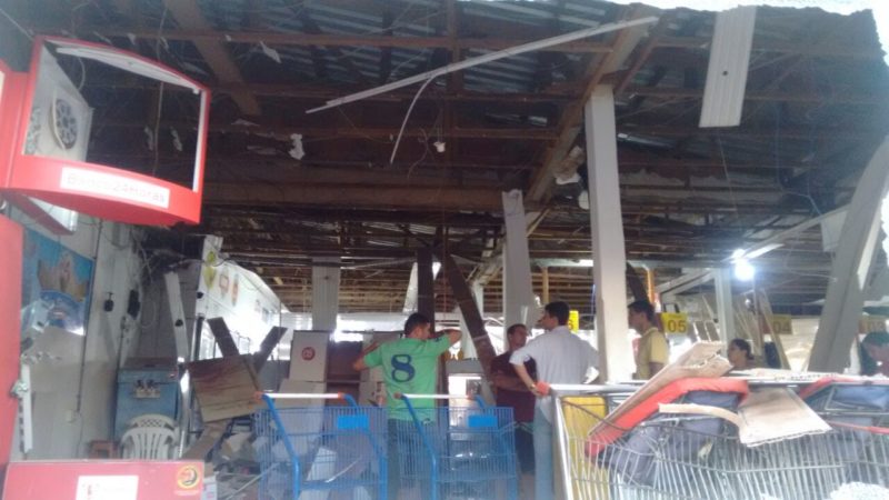 Além dos caixas, a estrutura do supermercado também ficou comprometida/Foto:Reprodução