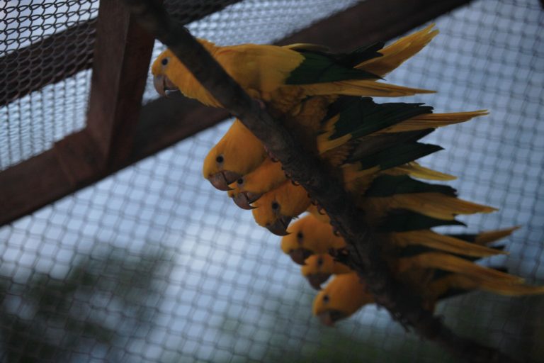 Após mais de 60 anos sem nenhum registro de aparição na região metropolitana de Belém por conta de um processo de extinção, chegaram nesta segunda-feira (7) a Belém, vindas de São Paulo, 12 espécimes do tipo Ararajuba, uma ave típica da região Norte e que está sendo reintroduzida em seu habitat natural.