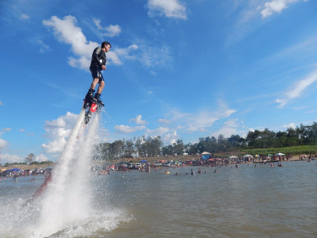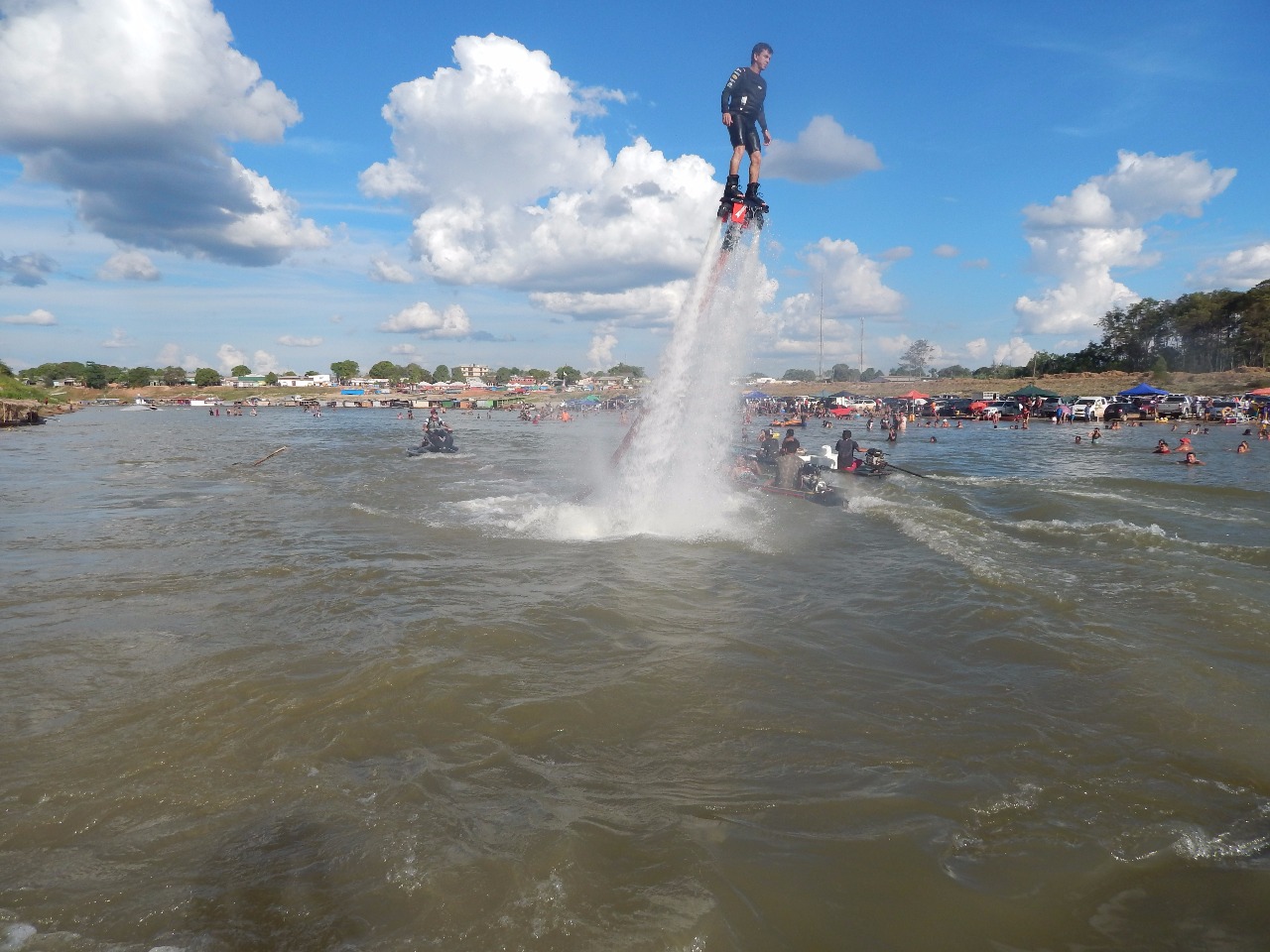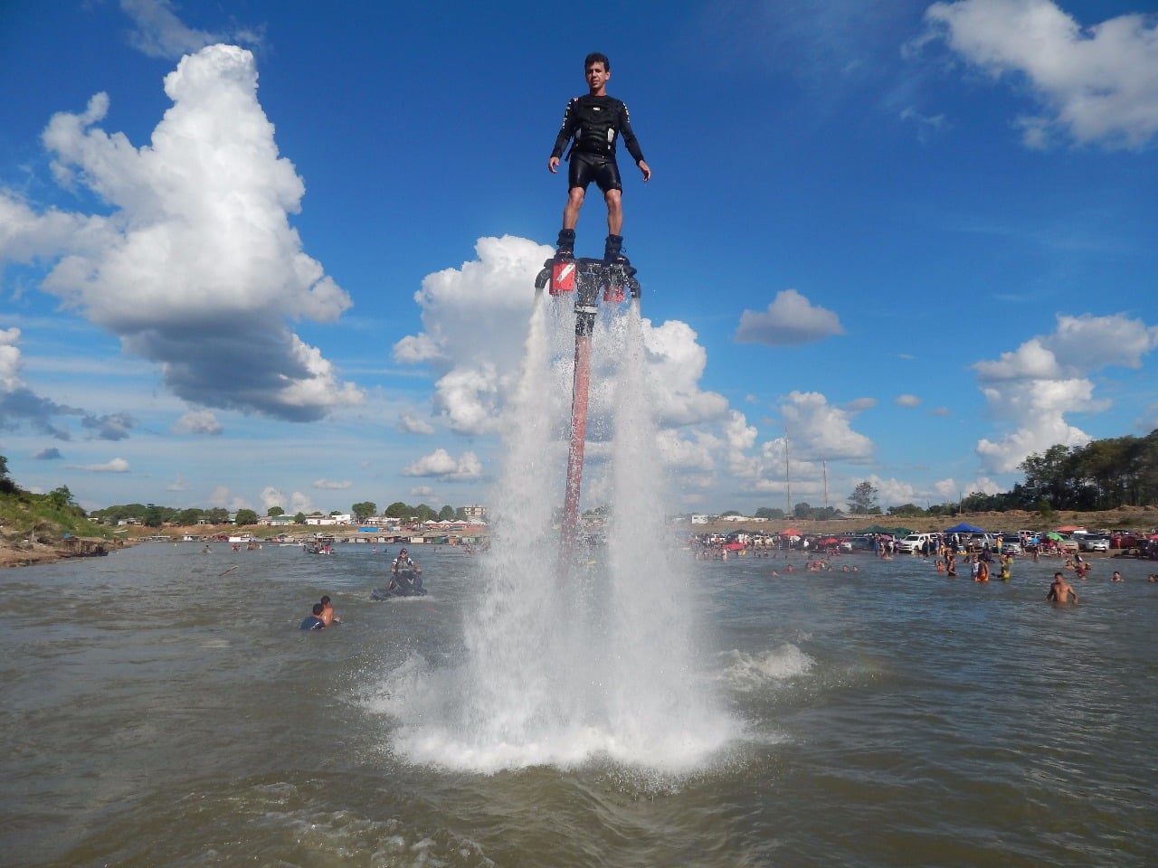 O taraucaense Júnior Damasceno foi outro destaque do festival. Ele foi o precursor do fly board no Brasil. “O equipamento é conectado na turbina do jet-ski e, conforme a aceleração, o piloto vai sendo lançado e pode alcançar até 15 metros de altura. Quem está em cima, vai fazer o esforço de se manter equilibrado”, explicou Damasceno, que é amante de outros esportes radicais como paraquedismo, Bunge Jumping e motocross.