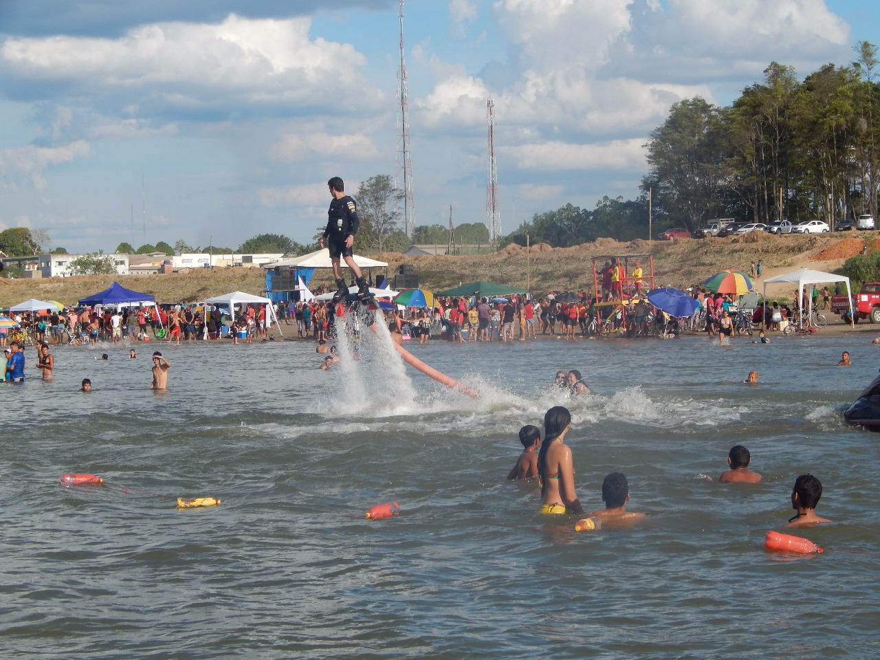 Bastou o sol sair na manhã deste domingo (13) para os feijoenses e milhares de turistas se dirigem para as margens do Rio Envira. A praia foi uma atração nos mais de três dias de festa que marcaram a 18° edição do Festival do Açaí. Além dos shows com os artistas locais, houve uma apresentação de fly-board (prancha voadora). À noite, o cantor Álamo Kário e banda levaram muito pop rock e, encerando as atrações, o sertanejo Thiago Brava levou o público ao delírio.