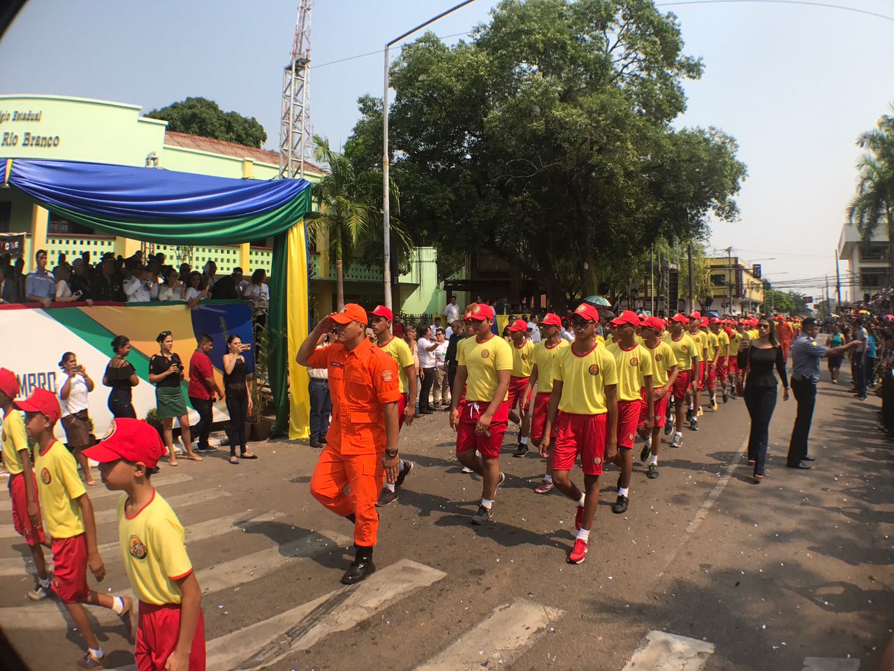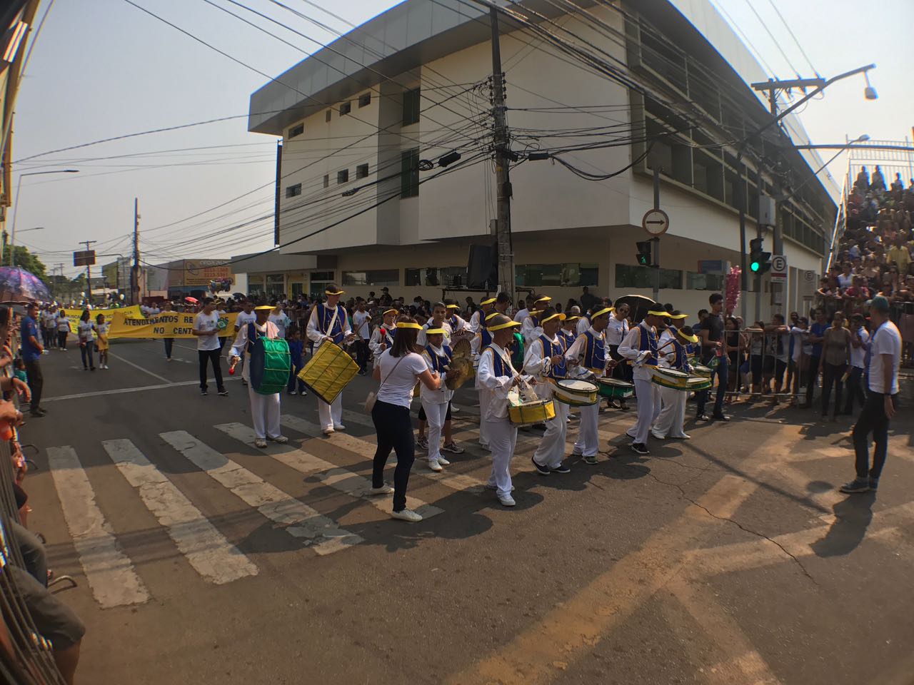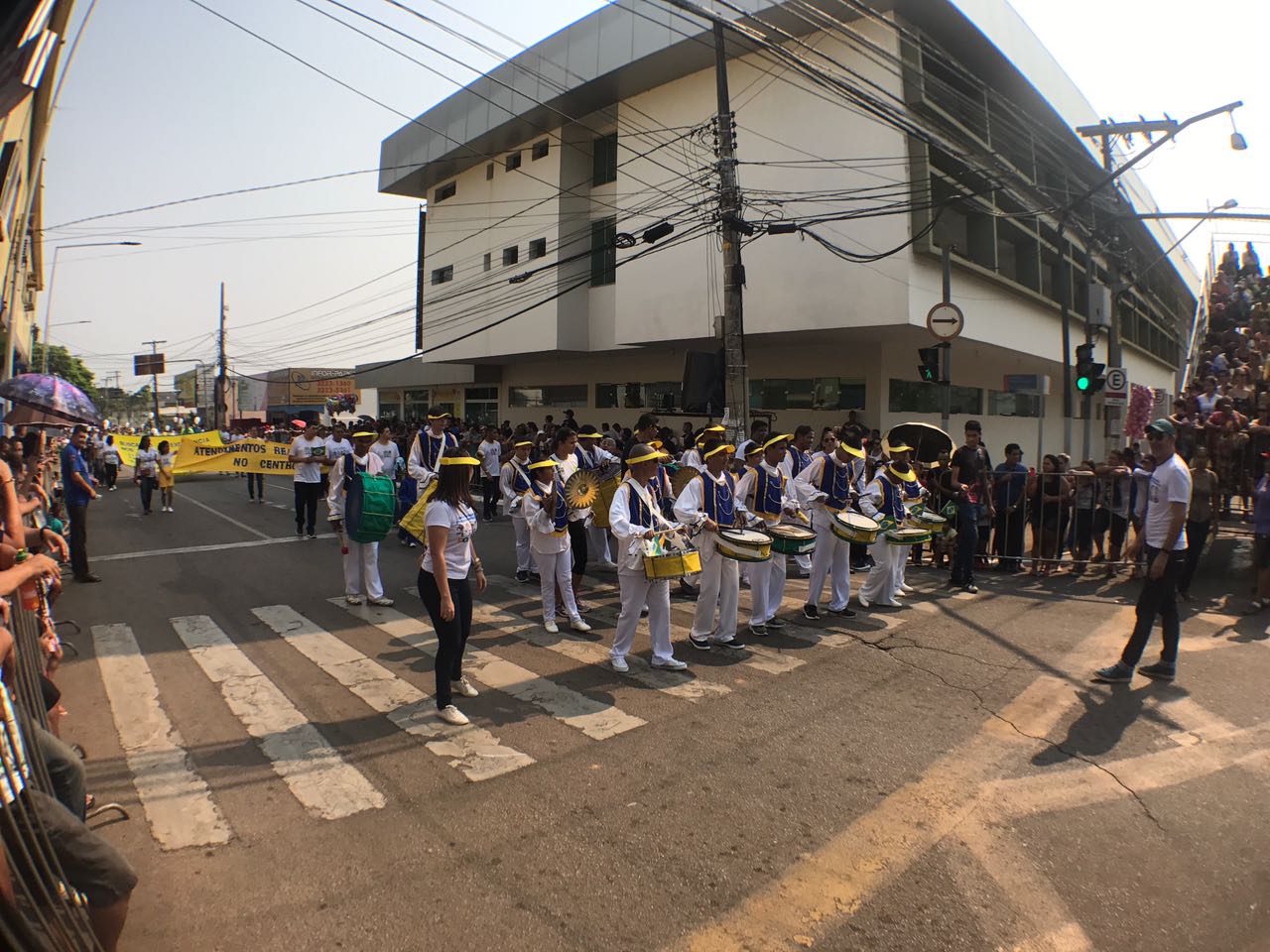 O desfile cívico teve início com a fanfarra da Associação de Pais e Amigos dos Excepcionais (Apae), do Centro de Ensino Especial Dom Bosco, da Ordem Demolay e Filhas de Jó, da Super Liga Acreana de Kung Fu e da Embaixada Mundial dos Ativistas pela Paz.
