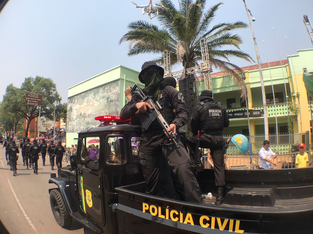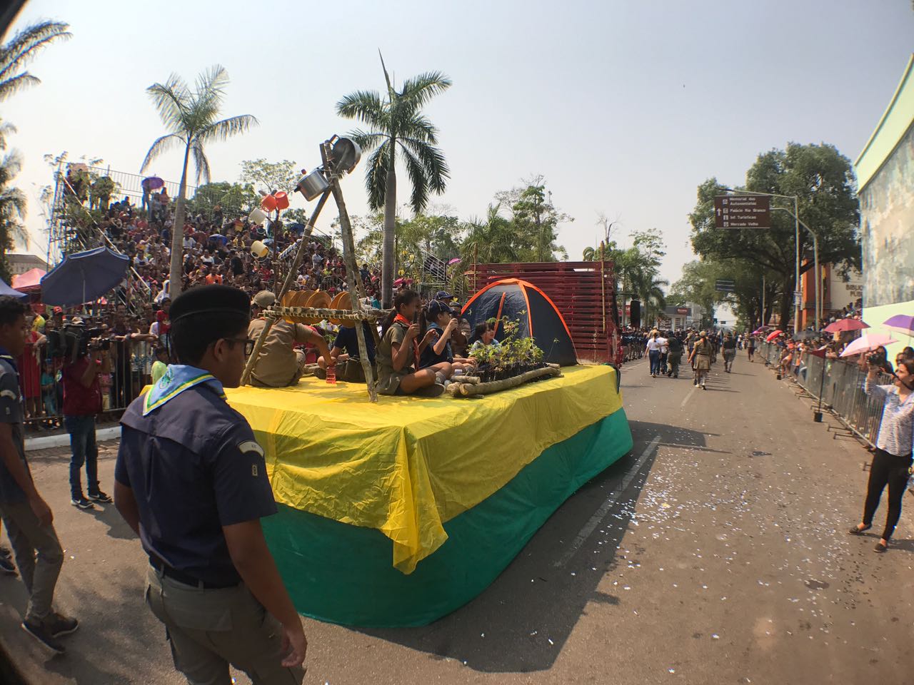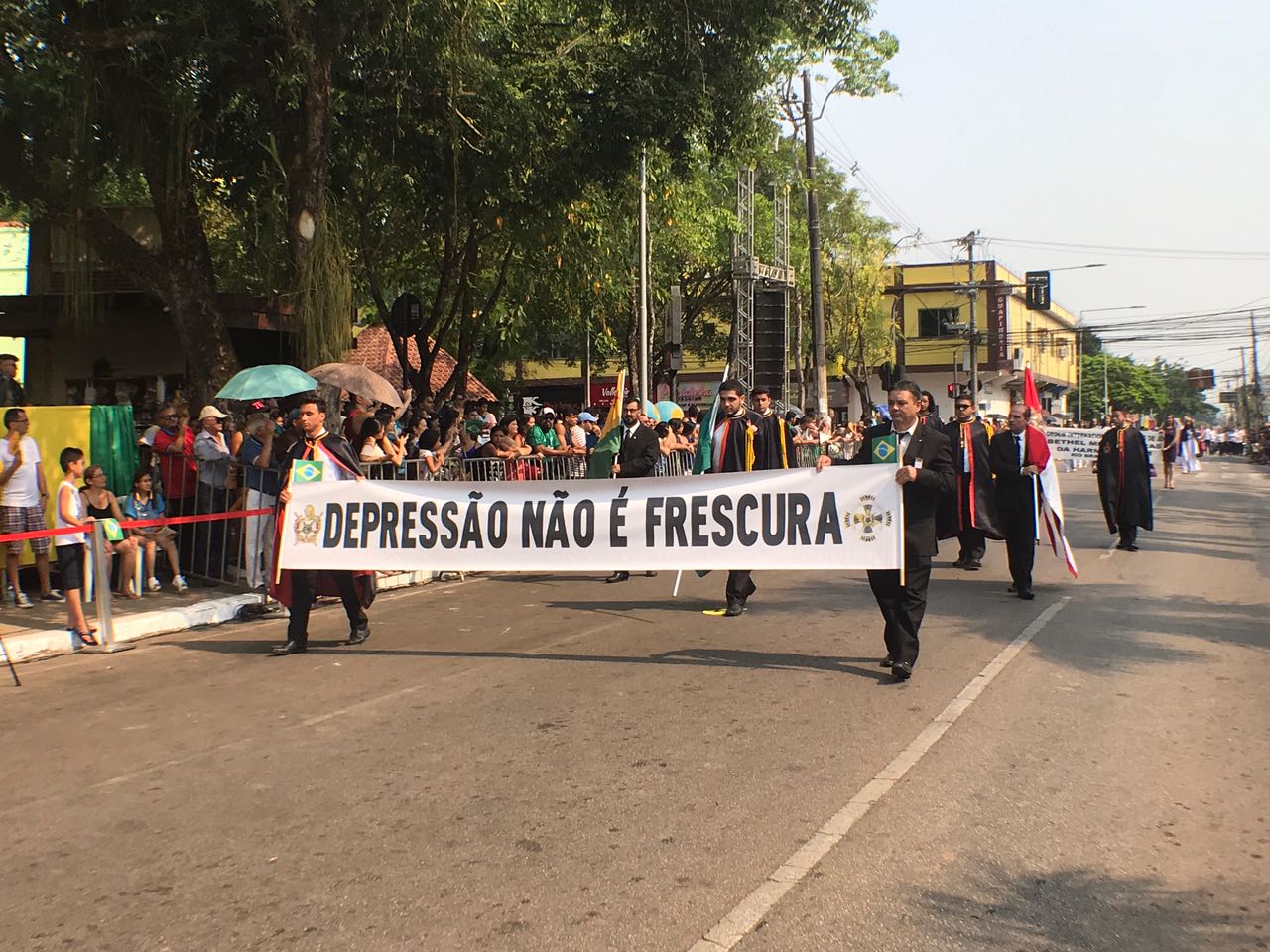 O desfile cívico teve início com a fanfarra da Associação de Pais e Amigos dos Excepcionais (Apae), do Centro de Ensino Especial Dom Bosco, da Ordem Demolay e Filhas de Jó, da Super Liga Acreana de Kung Fu e da Embaixada Mundial dos Ativistas pela Paz.