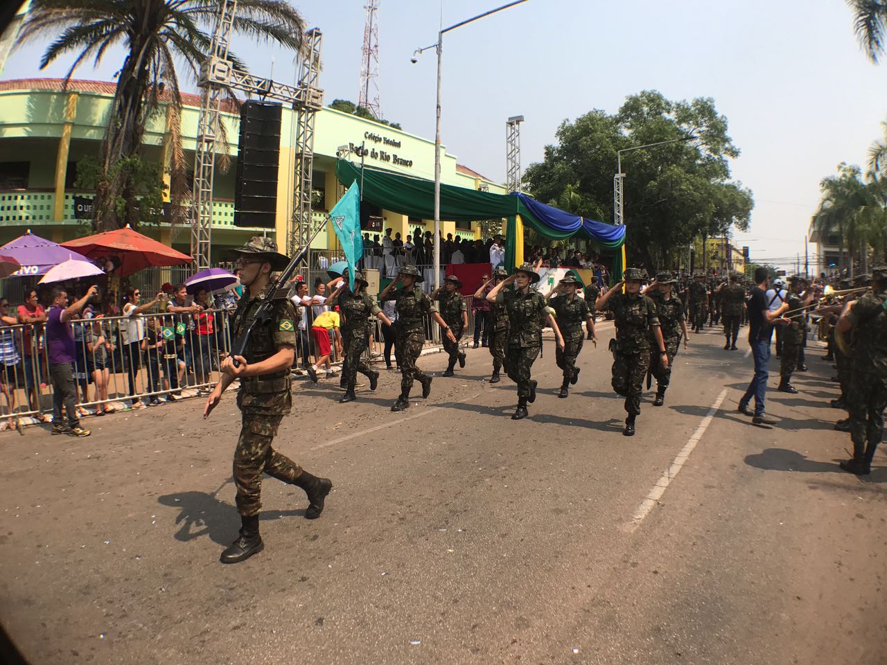 A programação teve início com os comandantes das forças militares do Exército Brasileiro e do Estado prestando continência ao governador Tião Viana, que realizou a revista às tropas militares.