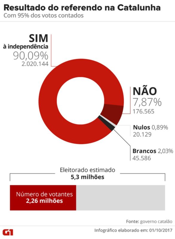 A atual crise política foi desencadeada após a realização de um referendo considerado ilegal pelo governo e pela Suprema Corte espanhóis. Na consulta popular de 1º de outubro, 90% dos votantes foram a favor da independência (2 milhões de pessoas, ou 43% do eleitorado catalão).