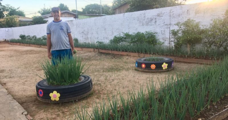 “Eu trabalho aqui há 11 anos, este ano como estou de porteiro acabei tento mais tempo livre e resolvi dar início à nossa horta. Hoje em dia, graças a Deus, tudo sobra aqui, pimenta, cebolinha e outros tipos de verdura, a gente tem tanta que os professores levam, alunos levam, todo mundo leva. Até melancia eu já plantei aqui”, disse Amadeu.
