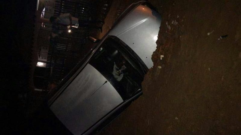 Uma camionete caiu dentro de um buraco na Rua A, loteamento Farhat, bairro Santa Helena, no 2º Distrito de Rio Branco, por volta das 23h30, deste domingo, 24, véspera de Natal, após a forte chuva na capital acreana.