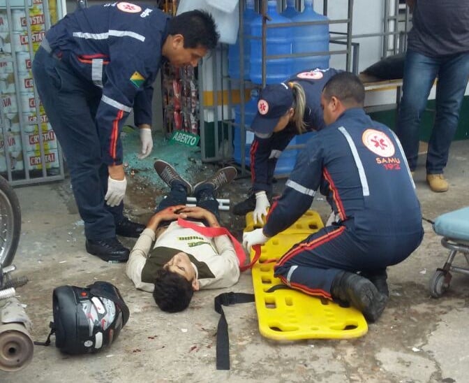 Equipe do SAMU foi acionada para socorrer o policial e o assaltante. Foto: Reprodução