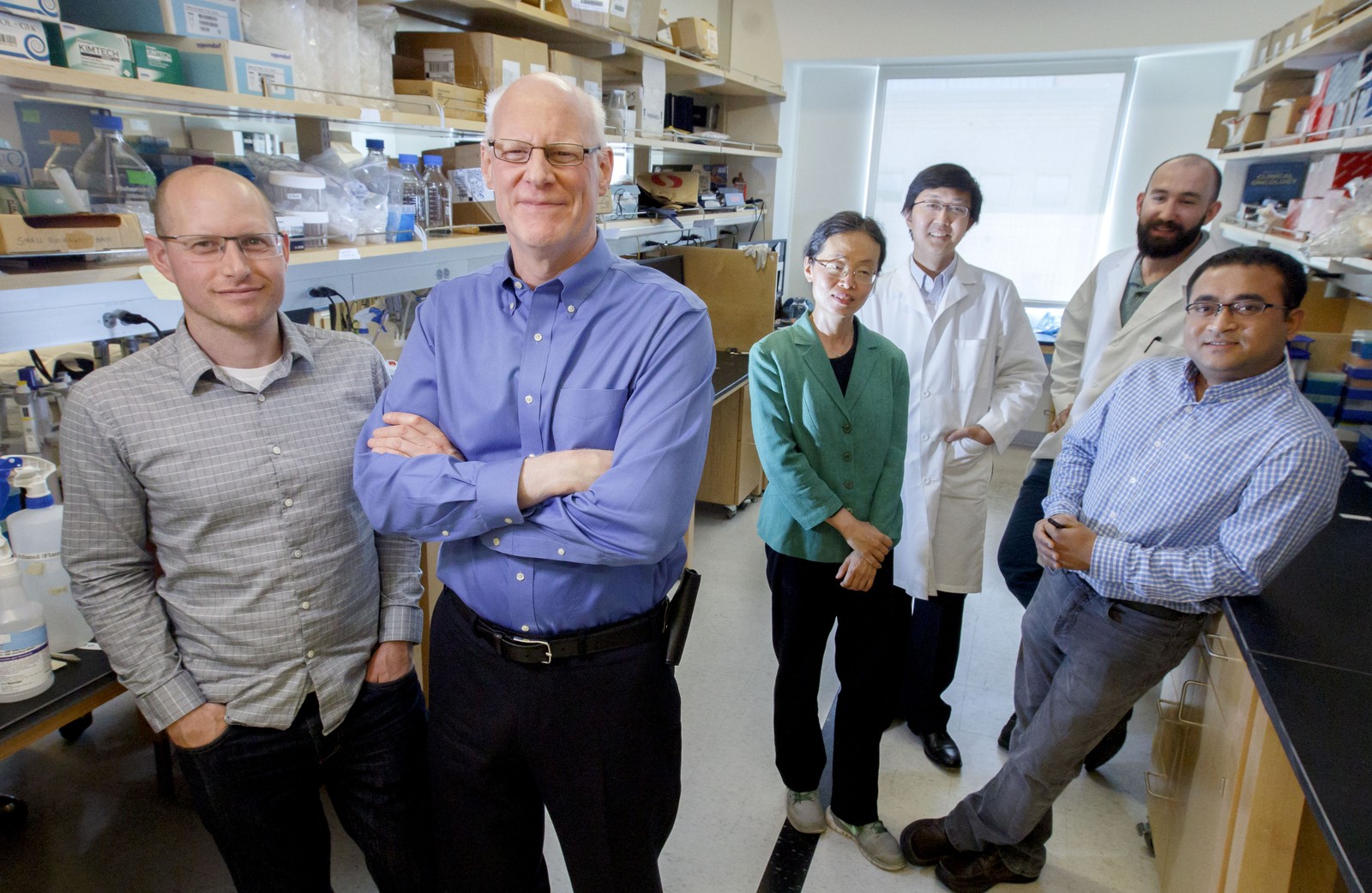 Cientista Raymond Bergan e equipe em laboratório no Instituto OHSU Knight Cancer, em Óregon (EUA) Foto: Kristyna Wentz-Graff/OHSU