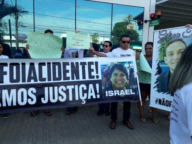 Familiares e amigos dos jovens mortos no acidente se manifestaram na última terça-feira (29), em frente ao Ministério Público do Acre (MPAC). Na semana passada, o suspeito de matar Gilson e Israel teria entrado com um pedido na justiça para responder o processo em Santa Catarina.