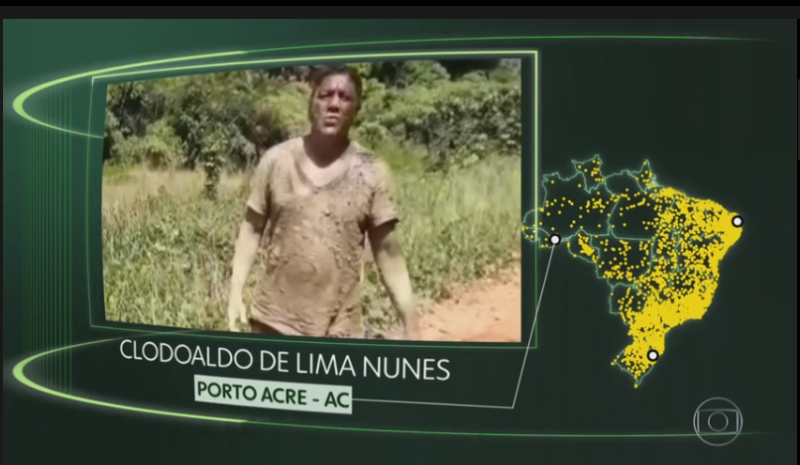 O agricultor Clodoaldo de Lima Nunes, morador do município de Porto Acre, distante pouco mais de 50 quilômetros da capital acreana, teve o seu vídeo exibido no quadro ‘O Que Brasil Eu Quero Para o Futuro’, no programa global dominical.