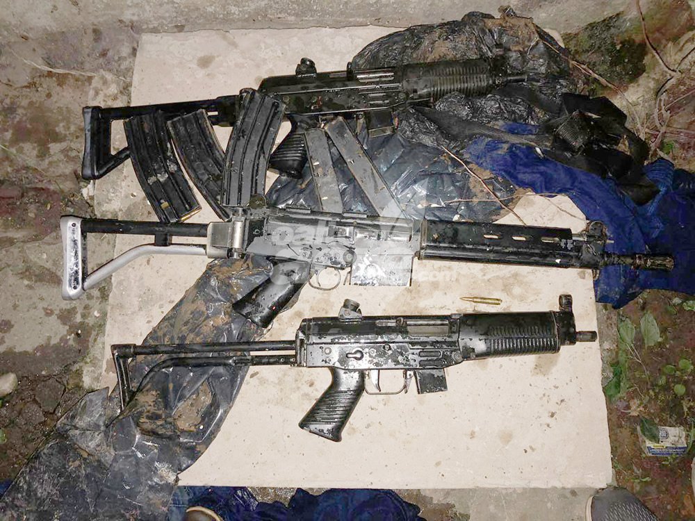 As duas submetralhadoras e o fuzil encontrados pela polícia/foto: O Alto Acre