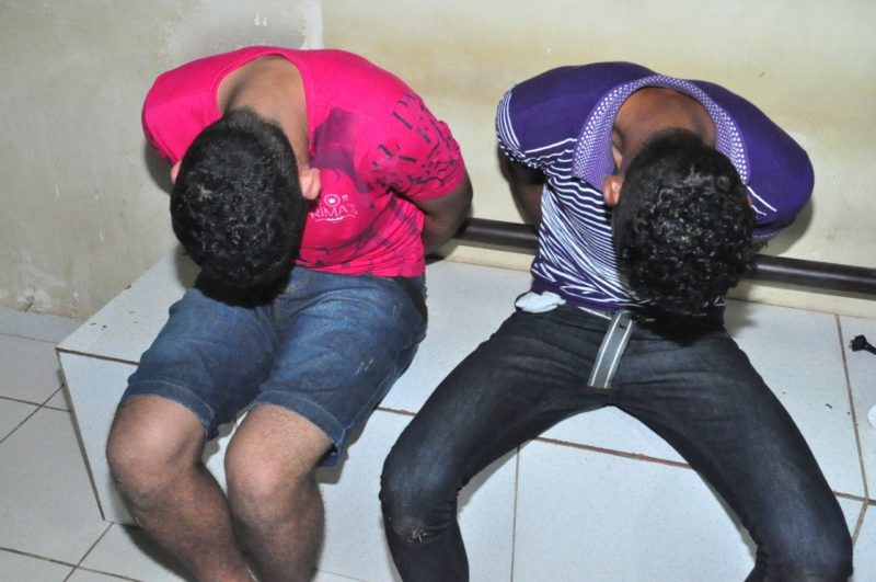 Policiais do 4º Batalhão faziam patrulhamento na noite desta quarta-feira (20) quando avistaram, na Rua João Chalub, no Conjunto Manoel Julião, próximo à Escola João Aguiar, dois homens em uma motocicleta. Wadinson Albuquerque da Silva, de 24 anos, e Kelvin Bezerra do Nascimento, 19, ainda tentaram escapar, mas foram detidos pelos PMs.