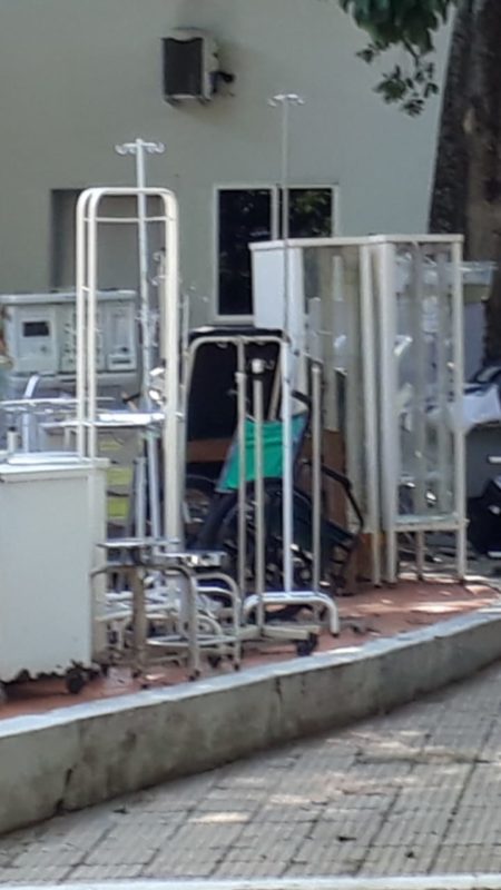 A reportagem do ContilNet recebeu uma denúncia afirmando que o estacionamento localizado nos fundos do Hospital da Criança, atrás da Maternidade Barbara Heliodora, está sendo usado como um depósito de equipamentos hospitalares. No local, é possível ver diversos aparelhos jogados a “céu aberto”.