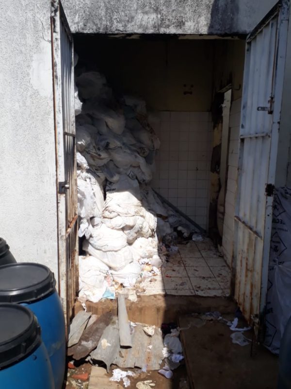 Além disso, por trás do hospital existe uma grande quantidade de lixo hospitalar armazenada de forma aparentemente indevida, podendo causar danos a saúde da população e pacientes. Um funcionário, ao ver a reportagem, tentou sair, mas ao ser questionado sobre o lixo tóxico, disse apenas que o hospital estava aguardando uma equipe fazer a retirada.