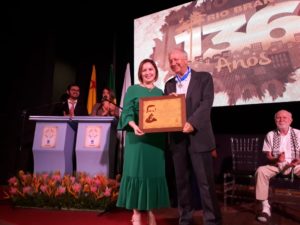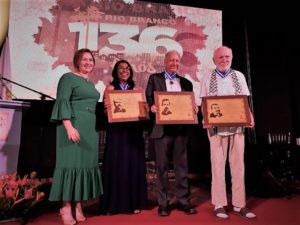 A prefeita de Rio Branco, Socorro Neri (PSB), entregou na noite desta sexta-feira (28), no Teatro Hélio Melo, no Memorial dos Autonomista, a Comenda da Ordem do Mérito Volta da Empreza 2018 a três pessoas que contribuíram com a história de Rio Banco.
