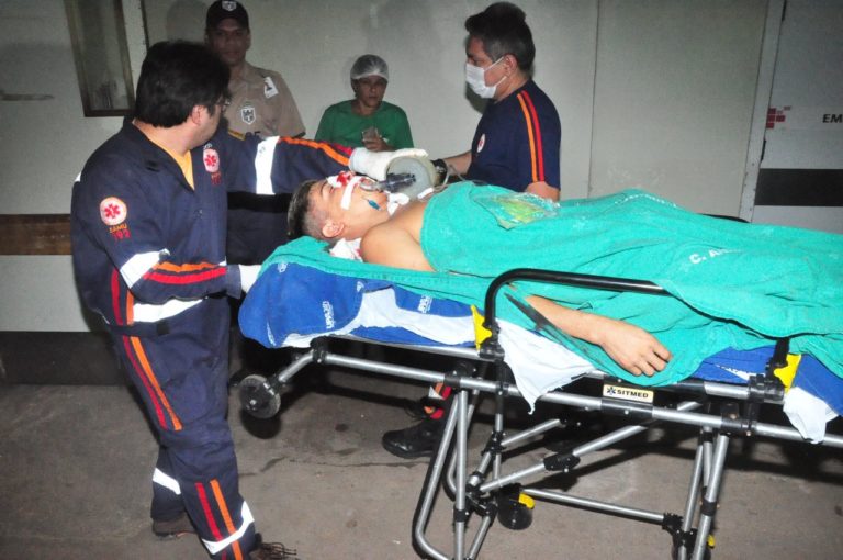 Segundo os paramédicos do Samu, o rapaz foi atingido no rosto, perna e nádegas.