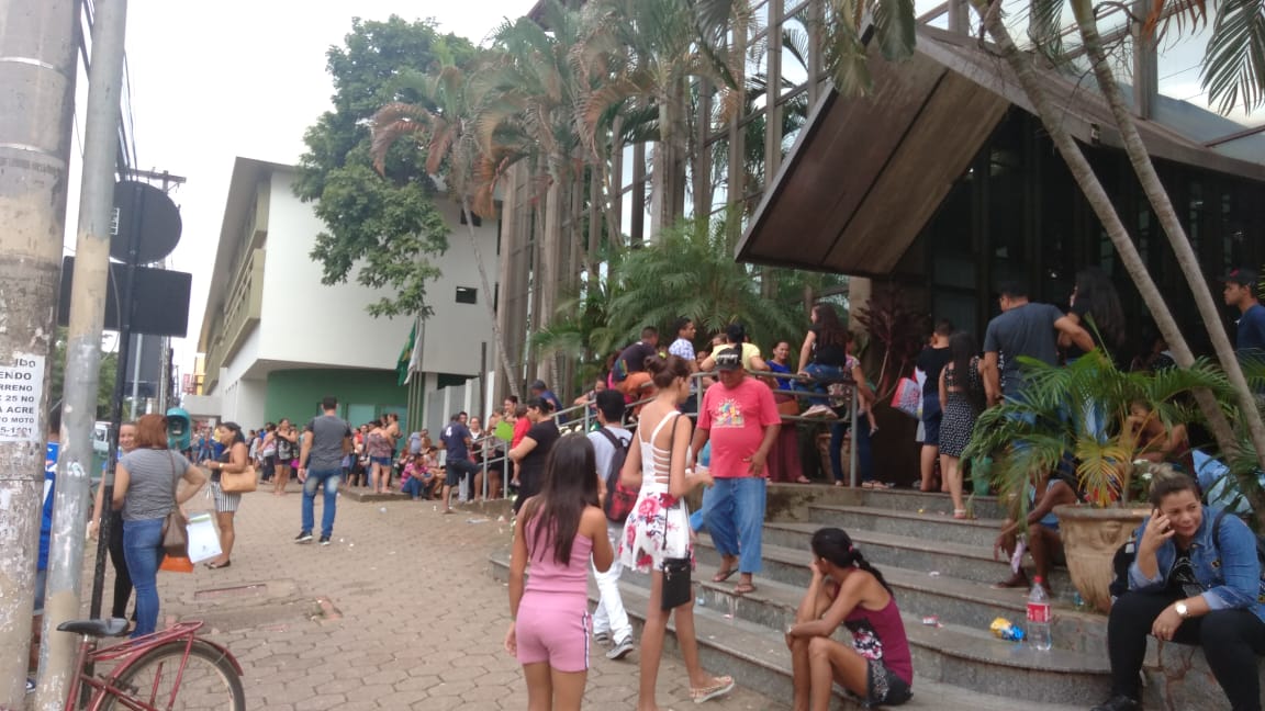 Pais formam fila em frente ao Centro de Referência de Inovações Educacionais (CRIE), central de matrículas para o ano letivo de 2019, no Centro de Rio Branco, para garantir aos filhos uma das vagas nas escolas da rede estadual de ensino.