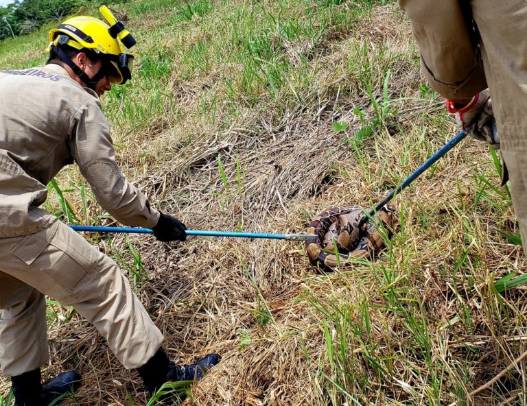 Um morador chamou por socorro porque estava assustado com a presença da cobra, que apesar do tamanho, não é venenosa.