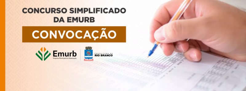A Prefeitura de Rio Branco, por meio da Empresa Municipal de Urbanização (EMURB), convoca os candidatos inscritos no processo seletivo nº 001/2019 para realizarem as provas práticas previstas no edital.