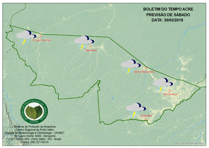 Neste sábado (3), a previsão para todas as regiões acreanas é de predomínio de sol entre muitas nuvens, deixando o tempo nublado e no período da tarde e noite ocorrem pancadas de chuva acompanhadas de trovoadas.