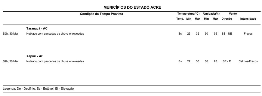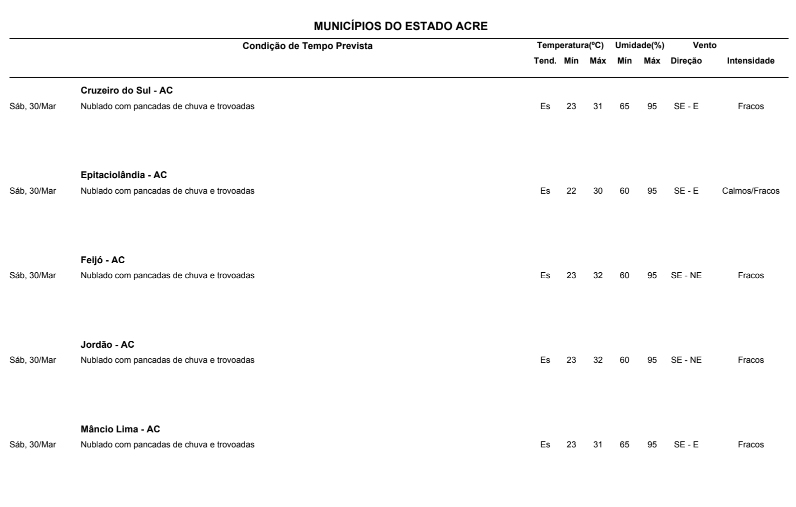 CONFIRA A PREVISÃO PARA OS OUTROS MUNICÍPIOS: