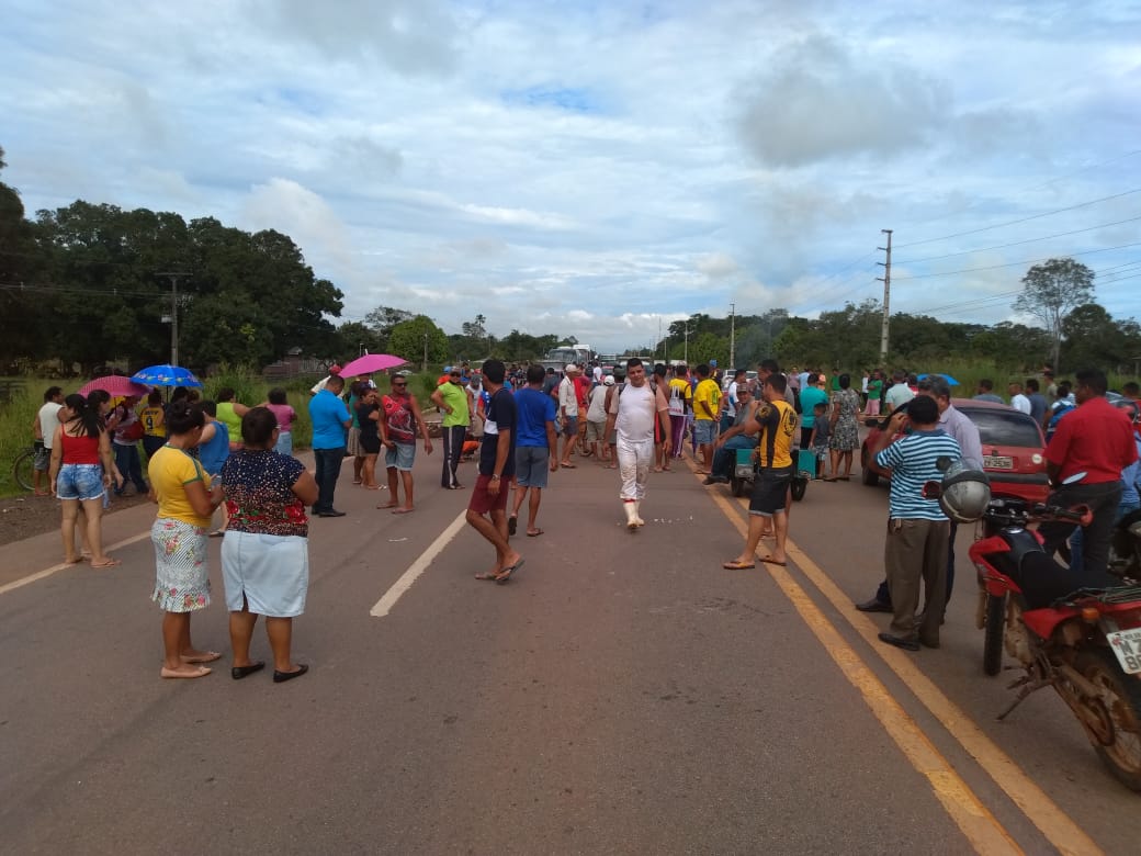 Os manifestantes exigem que as autoridades públicas compareçam ao local e escutem as reivindicações sobre falta de iluminação pública, saneamento básico e segurança.
