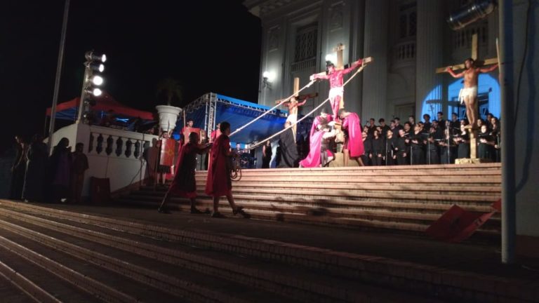A crucificação da Jesus Cristo, um dos eventos mais emblemáticos do catolicismo e lembrado anualmente pela Igreja Católica, foi mais uma vez encenado na esplanada do Palácio Rio Branco, em Rio Branco (AC), após uma procissão pelas principais ruas do centro da Capital. Pelo menos dez mil pessoas participaram da procissão, nas contas da Igreja local.