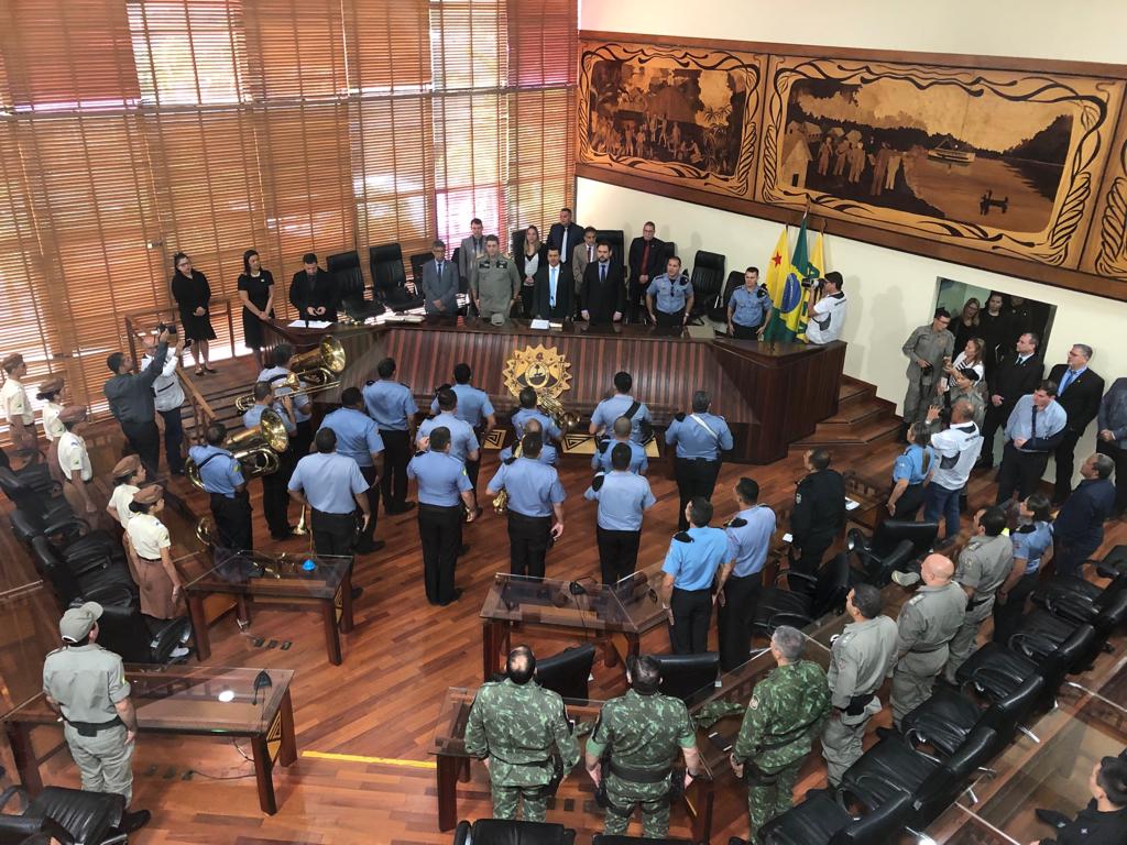 O requerimento foi uma proposta do deputado Cadimiel Bomfim (PSDB), que recebeu dezenas de militares do estado.