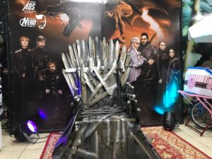 Dentre as principais atrações, estava o famoso ‘Trono de Ferro’ da série Game Of Thrones, que animou os fãs de carteirinha e foi, por muitas vezes, o objeto mais desejado do encontro, usado para o registro de muitas fotos. O clássico Fliperama, jogo dos anos 80, também atraiu os olhares e reuniu muitos jogadores. Os dois símbolos foram criados a partir de materiais recicláveis.