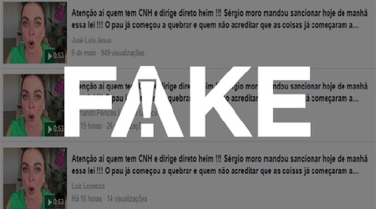 A mensagem falsa tem centenas de compartilhamentos no Facebook. A legenda que acompanha o vídeo diz: “Atenção aí quem tem CNH e dirige direto heim !!! Sérgio moro mandou sancionar hoje de manhã essa lei !!! O pau já começou a quebrar e quem não acreditar que as coisas já começaram a mudar pode se dar muito mal !!!”