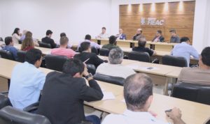 Durante a reunião, os presentes tiveram oportunidade de fazer perguntas e de tratar de temas relevantes com o superintendente da Suframa. O diretor da FIEAC e presidente do Sindicato das Indústrias de Alimentos do Estado (Sinpal), José Luiz Assis Felício, aproveitou a ocasião para falar sobre um importante anseio da classe industrial.