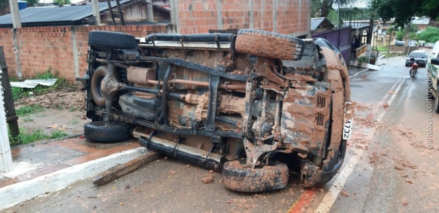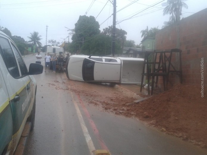 Carro capotou em Epitaciolândia/Foto: Alexandre Lima
