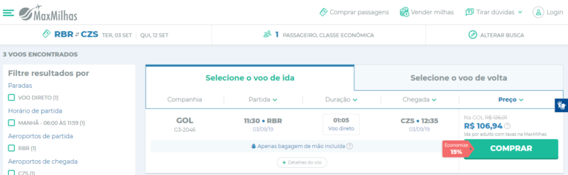 Uma promoção promoção da empresa Maxmilhas, pode ser a chance dos acreanos de comprarem passagens aéreas com desconto, com possibilidade de parcela em até três vezes sem juros, as passagens entre Rio Branco e Cruzeiro do Sul (ida e volta) por apenas R$208. Outra boa oportunidade é entre Rio Branco e São Paulo, que estão saindo por R$ 763. Os vôos são variam entre as duas companhias que atuam no estado: GOL e Latam.