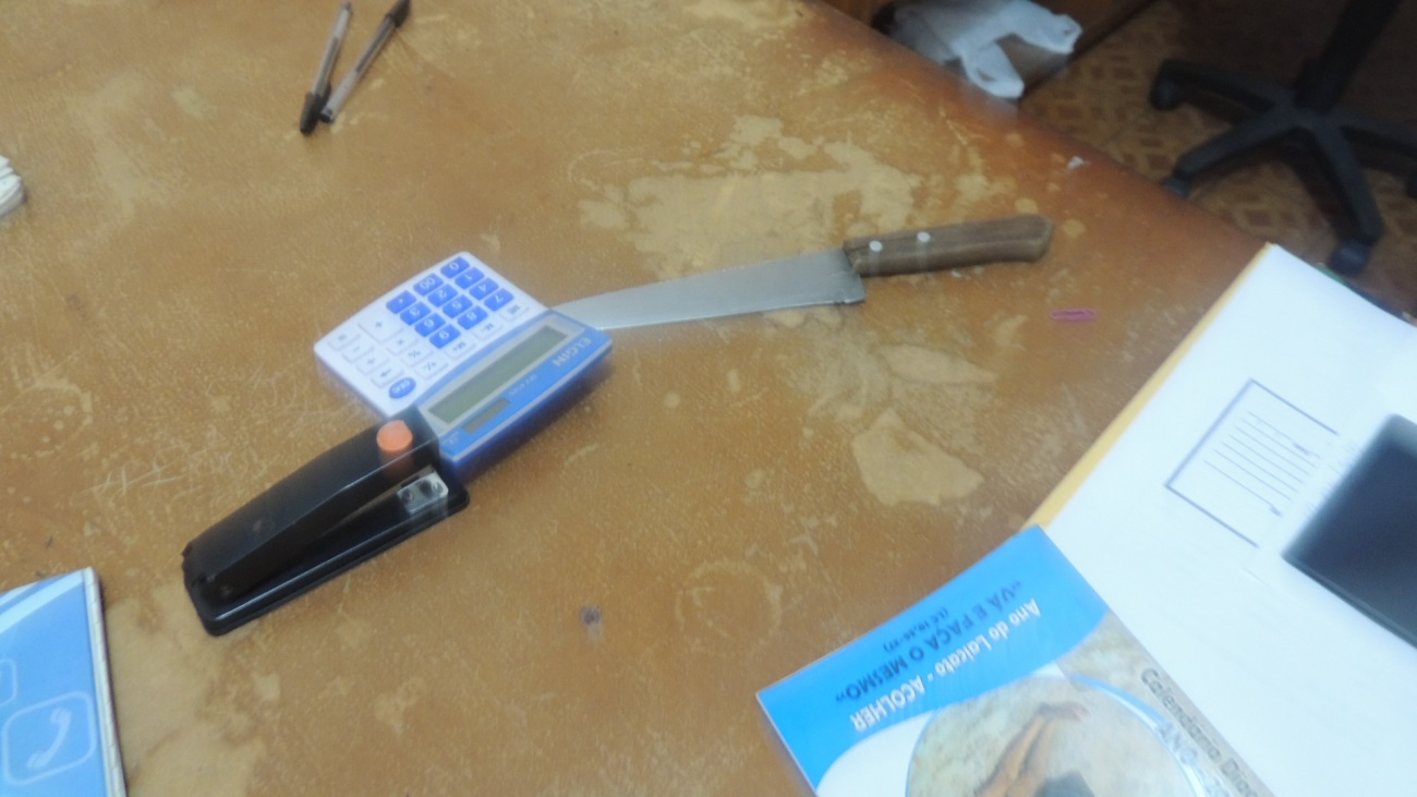 Faca com a qual a coordenadora teria sido ameaçada durante a invasão./ Foto: Reprodução