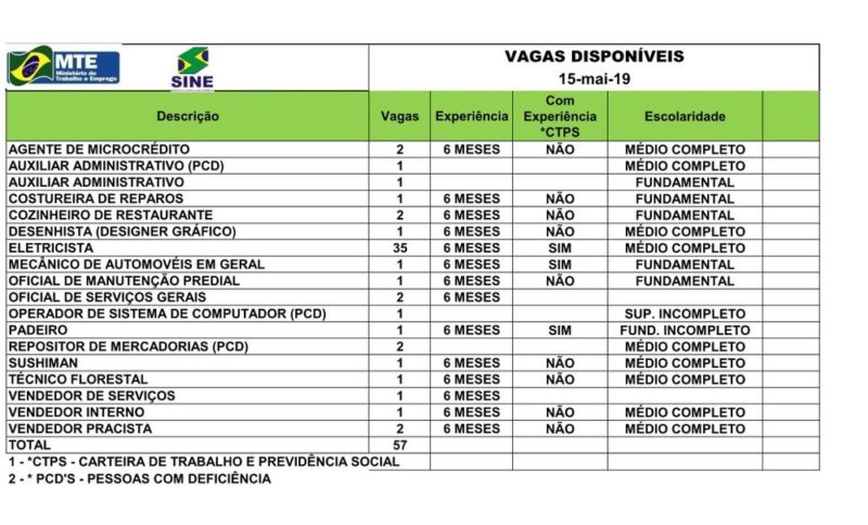 Para concorrer a uma das vagas, o candidato precisa ter o cadastro no Sine atualizado. Para realizar o cadastro basta levar os seguintes documentos: Carteira de Trabalho, Identidade/CPF, Título de Eleitor, comprovante de escolaridade e comprovante de endereço.