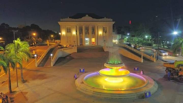Um dos mais antigos e tradicionais cartões postais do Acre, a fonte luminosa de frente ao palácio Rio Branco esta com nova roupagem, cores vibrantes, dão um ar mais alegre e descontraído a figura imponente do Palácio.