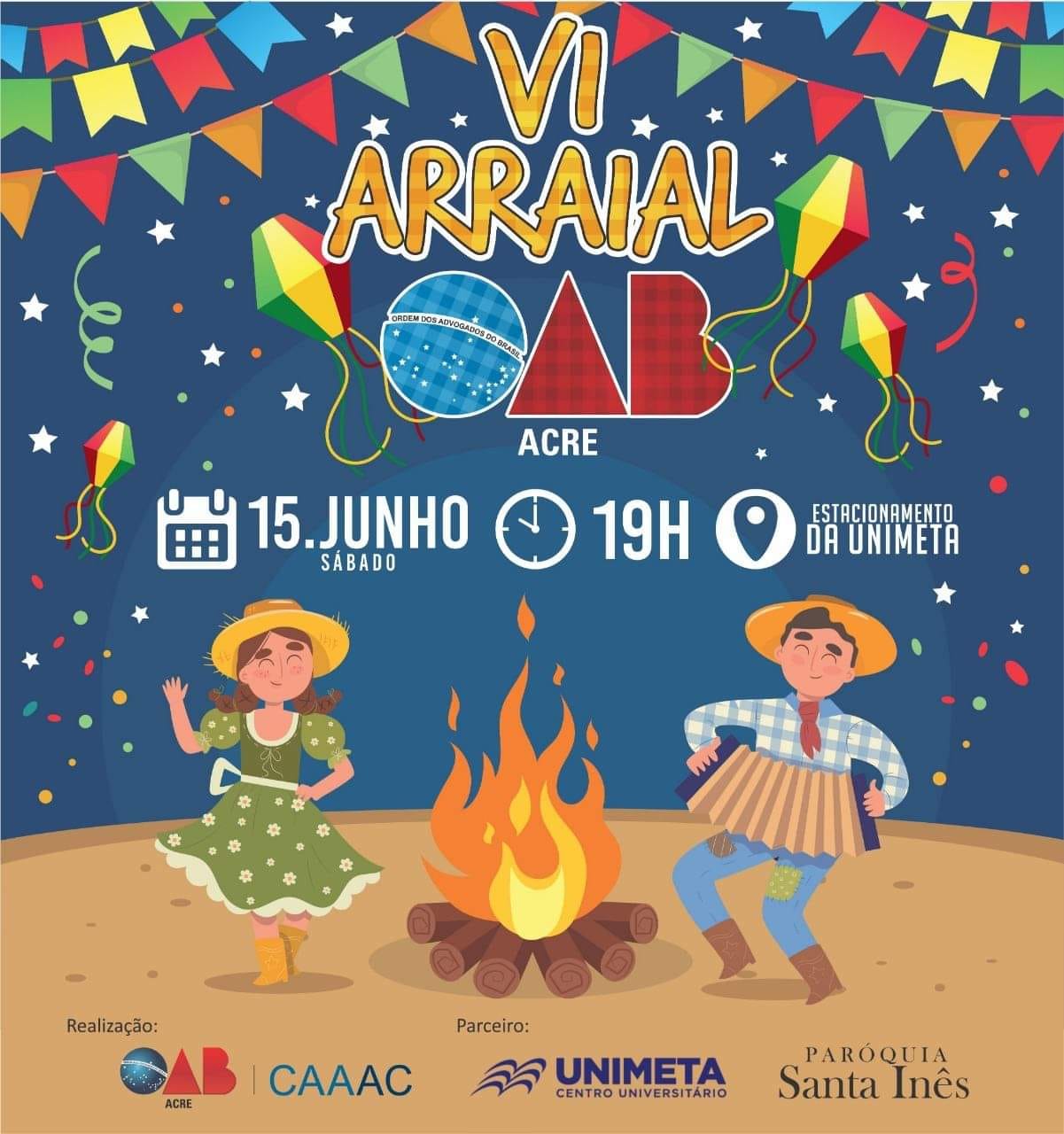Presidente da CAA/AC, Thiago Vinícius Poersch explica que o Arraial da OAB/AC é realizado desde 2013 e que neste ano a estimativa de público é de mil pessoas. Ele destaca que a Paróquia Santa Inês e a Unimeta são parceiras na realização da festividade. “É um evento que está no calendário da OAB Acre desde 2013 e neste ano contaremos com a quadrilha 171 da Roça, formada somente por advogados. Tenho certeza que será um grande sucesso e veremos o sorriso estampado nos rostos das famílias de cada advogado”, destaca.