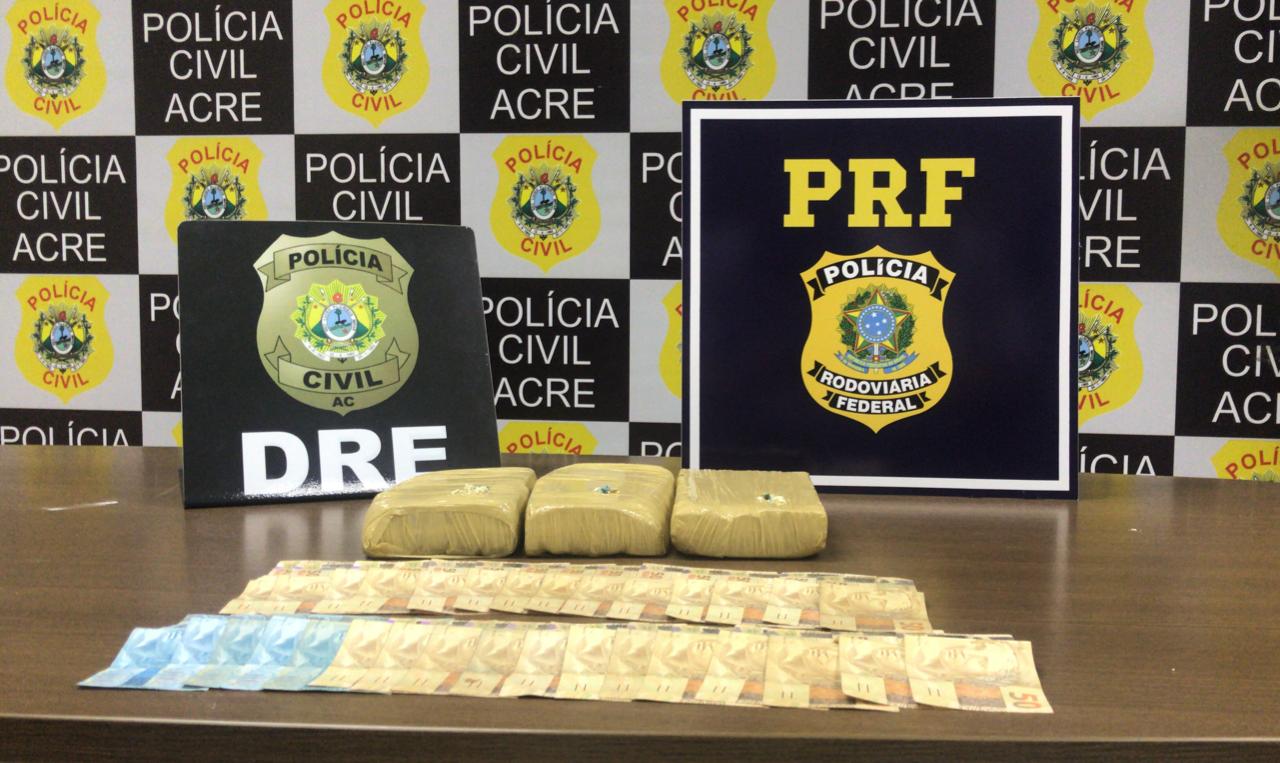 Uma ação conjunta entre a Polícia Rodoviária Federal (PRF) e a Delegacia de Repressão a Entorpecentes (DRE), na manhã desta quarta-feira (26), resultou na apreensão de 3 quilos de cocaína e quatro prisões, na Rodovia AC-40 – Villa Acre.