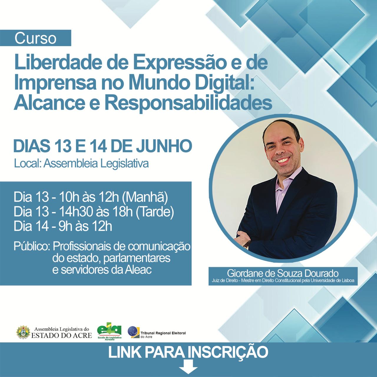 Através de uma parceria entre a Assembleia Legislativa do Acre (Aleac), e o Tribunal Regional Eleitoral (TRE/AC), será realizado no plenário do Poder Legislativo Acreano, o curso “Liberdade de expressão e de imprensa no mundo digital: alcance e responsabilidades”.