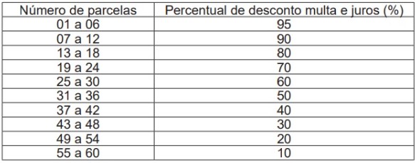Veja a tabela de parcelas e de descontos oferecidas no programa: