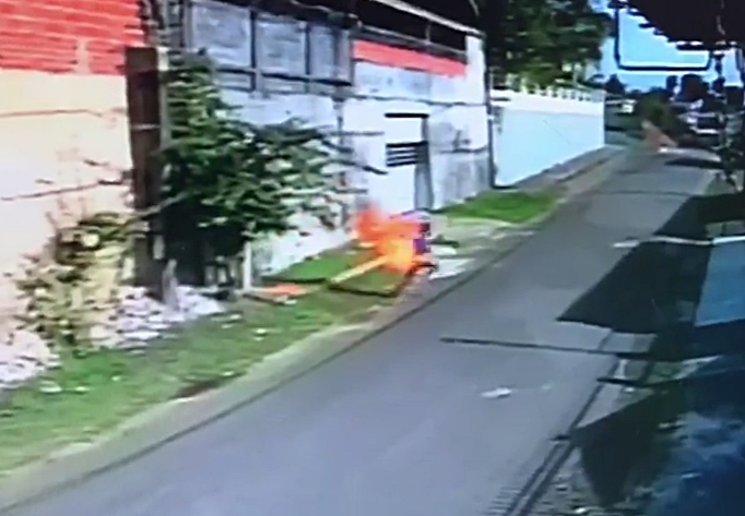 Jurandir caiu na frente da casa de Teófilo José com o corpo em chamas e só foi possível apagar o fogo com um extintor de incêndio. “Eu estava na frente da minha casa, quando ele vinha correndo com o corpo em chamas, pedi para alguém pegar um cobertor para apaga o fogo, foi nesse momento que apareceu um homem com um extintor e apagou o fogo, minutos depois a viatura da Samu chegou e levou o rapaz”, conta.