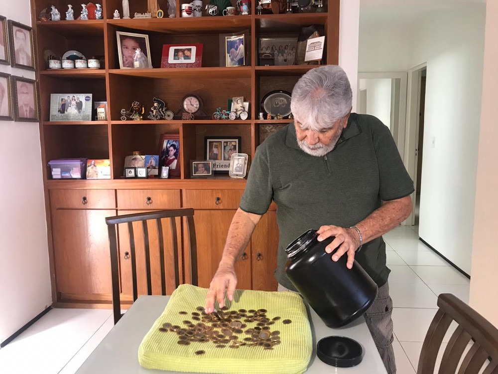 O aposentado conta que já conheceu países como Argentina, Chile, Paraguai e Uruguai só com o dinheiro que guarda em um cofre. No último dia 5 de junho, ele fez a quebra anual do cofre. Com o valor de R$ 5.233, dinheiro que seria usado para comprar cigarros, ele já planeja a próxima viagem.