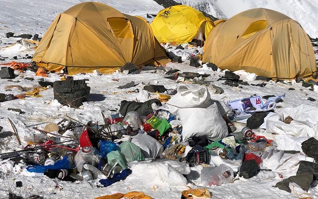 Alpinistas que voltavam da montanha de 8.850 metros, a mais famosa do Nepal , disseram que as encostas estão repletas de excremento humano, cilindros de oxigênio usados, barracas rasgadas, cordas, escadas quebradas, latas e plásticos deixados pelos alpinistas, um constrangimento para um país que obtém renda valiosa das expedições ao Everest.